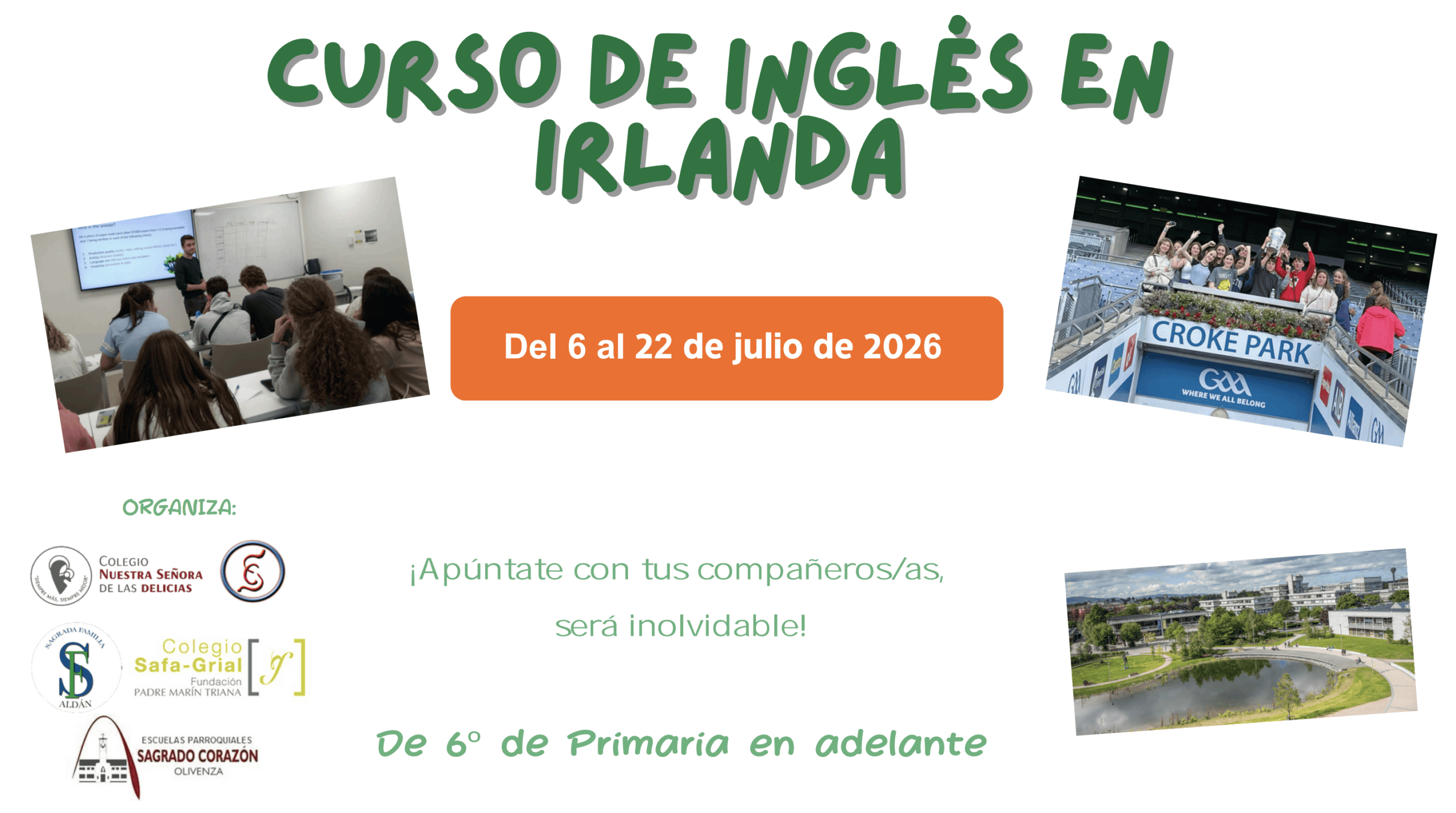 Curso de Inglés en Irlanda 2026 Para más información escribe al correo: anapalmira@sagrados-corazones.es