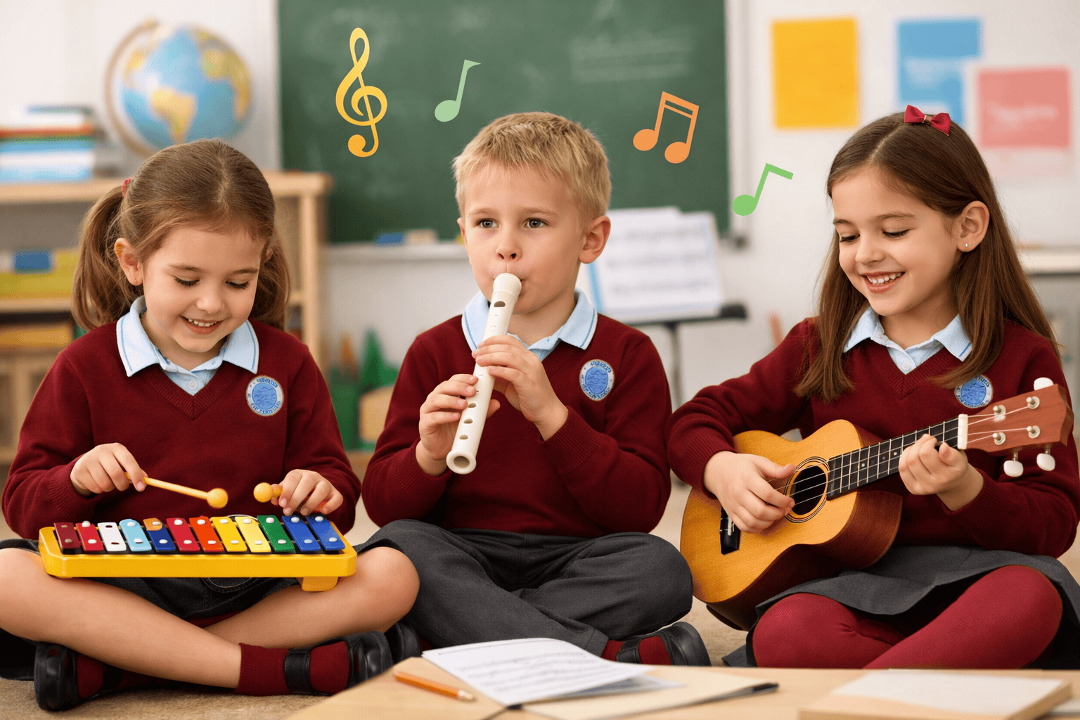 El trabajo instrumental se articula en torno a tres instrumentos principales: el carrillón en los cursos iniciales, que permite a los más pequeños iniciarse en el ritmo y la altura de los sonidos; la flauta dulce en los cursos intermedios, con la que desarrollan la técnica, la respiración y la lectura musical; y el ukelele en los cursos superiores, que introduce el acompañamiento armónico y el trabajo conjunto propio de la música de grupo.